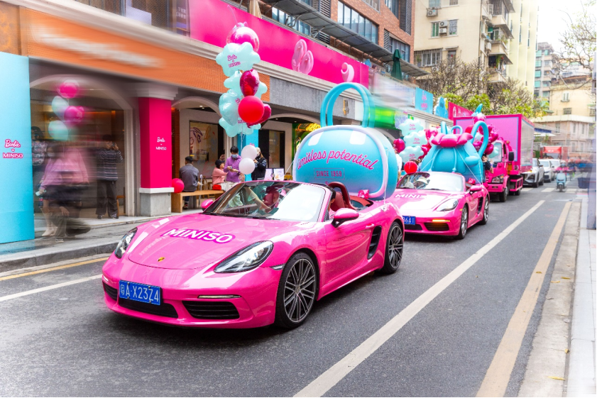 3月8日,名創(chuàng)優(yōu)品通過(guò)巨型氣模“粉上天”、芭比粉車(chē)隊(duì)靜展以及沿途商戶的粉色圍墻裝潢,將廣州潮流地標(biāo)東山口打造成一片粉色海洋,吸引了大量年輕人、時(shí)尚KOL前來(lái)圍觀拍照。而作為本次活動(dòng)的主角,“芭比周年巡游”更是直接登上了微博熱搜榜前列,#一起來(lái)名創(chuàng)芭比65周年巡游#話題曝光超3.2億,引發(fā)超2.4萬(wàn)討論。