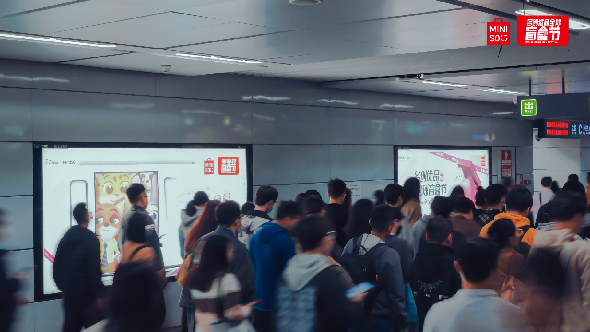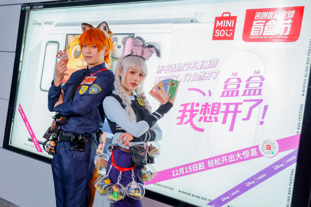地鐵燈箱上,名創(chuàng)優(yōu)品用一種輕松的方式為消費者傳遞豁達能量,這種玩梗文案迅速成為社媒熱門話題。名創(chuàng)優(yōu)品還特別邀請了Coser以《瘋狂動物城》中狐貍尼克與兔子朱迪的形象現(xiàn)身地鐵站,為粉絲們帶來沉浸式的破次元體驗,塑造出屬于年輕人的共鳴磁場。