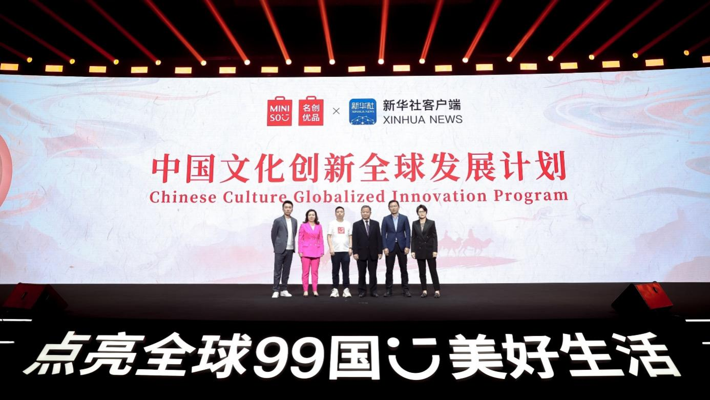 發(fā)布會上,名創(chuàng)優(yōu)品聯(lián)合新華社客戶端啟動“中國文化創(chuàng)新全球發(fā)展計劃”,助力中國文化創(chuàng)新,講好中國品牌的全球化故事,傳遞美好生活理念。